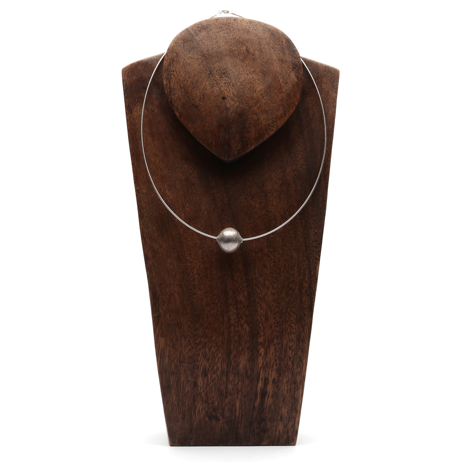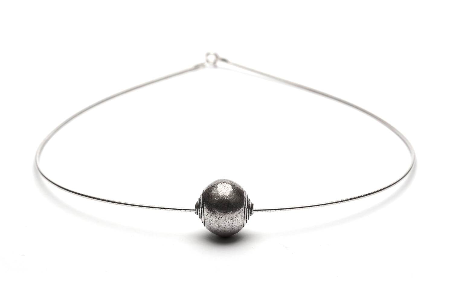 Oryginalny naszyjnik z dekoracyjną srebrną kulką.