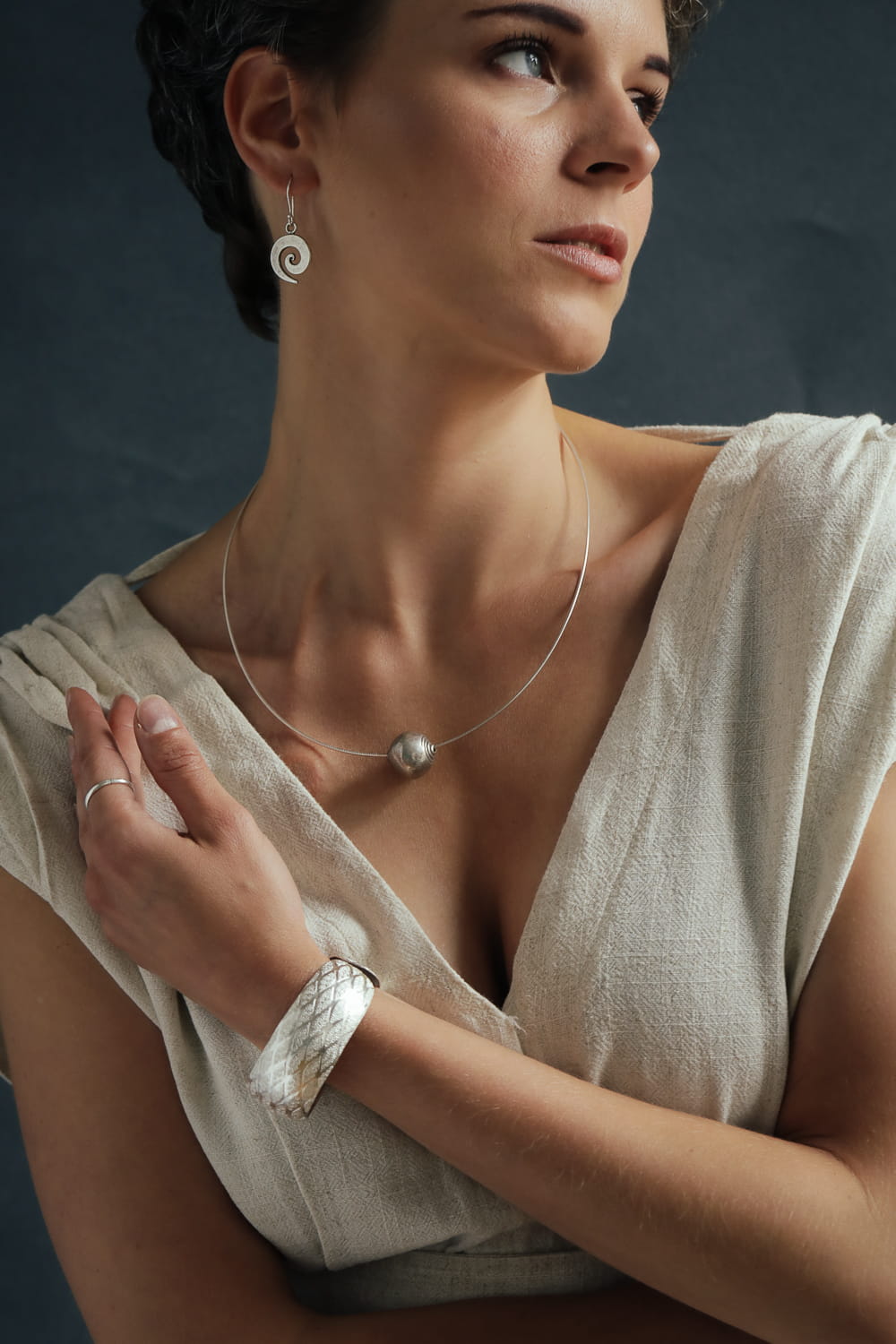 Naszyjnik w całości wykonany jest ze srebra próby 925, częściowo rodowanego, oksydowanego i wypolerowanego.