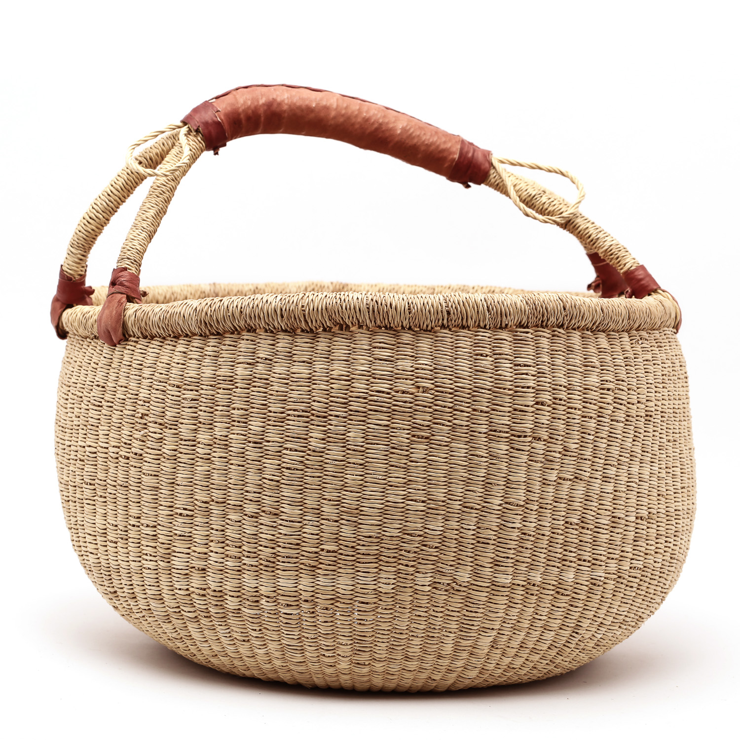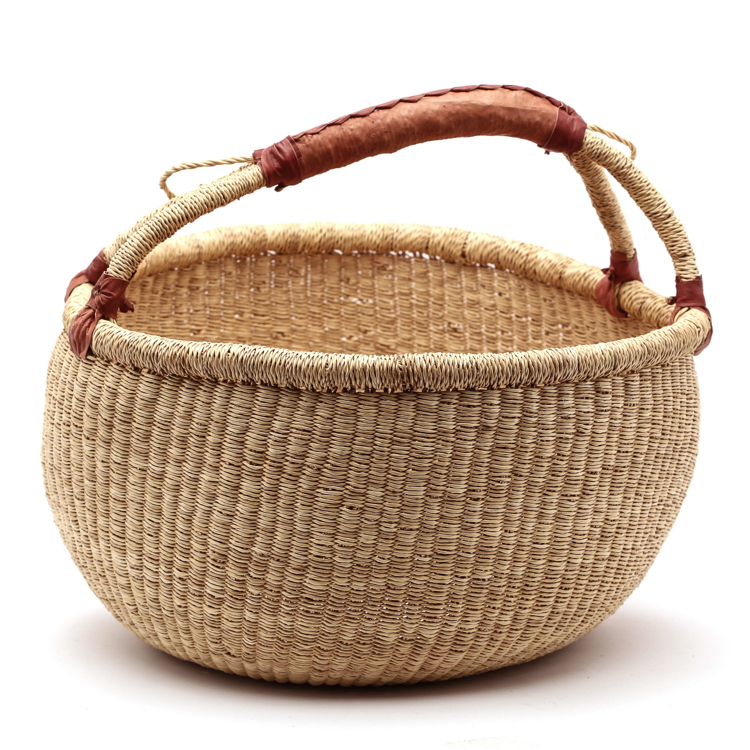 Duży naturalny kosz afrykański z uchem do ręki w stylu Bolga.